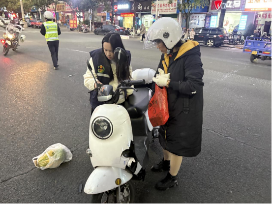 当双方因责任认定产生争执时,二人及时介入劝解,耐心引导双方冷静沟通、换位思考,成功避免冲突升级。交警抵达后,陈雪梅简明扼要汇报现场情况及前期处置细节,待事故责任明确,又主动协助移开事故车辆,助力路口交通快速恢复正常。目前,涉事双方已达成一致,伤者已送医进一步检查。