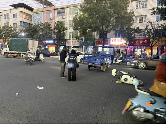 信丰融媒体客户端讯(通讯员蒋梦娴)近日,交通晚高峰与学校放学时段叠加,健康路社区包联干部赖艳与网格员陈雪梅在同益路周边巡查时,突发阳明南路与同益路十字路口三轮车与电动车相撞事故。二人闻声即刻赶赴现场,陈雪梅第一时间查看伤者状况,确认其仅为手腕扭伤、手臂擦伤且无生命危险后,一边安抚伤者情绪,一边指导当事人报警、报保险并留存现场证据,同时快速疏散围观人群、维护现场秩序,有效防范二次事故发生。