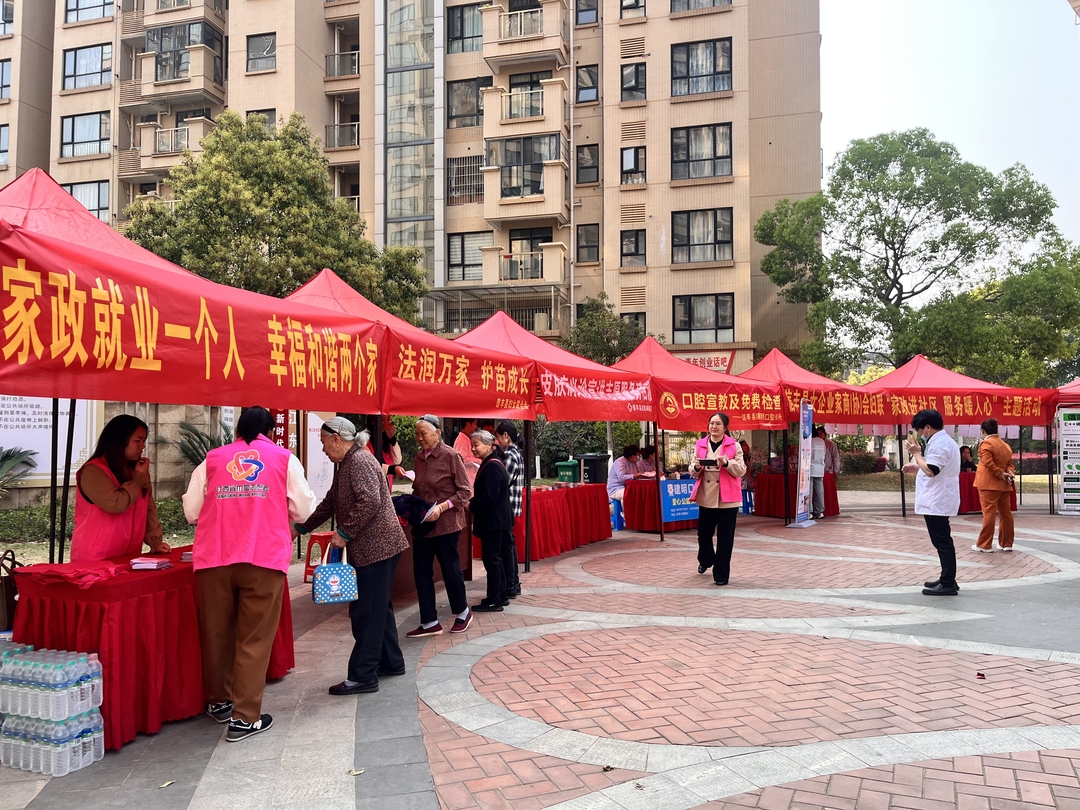 在活动现场,各服务项目有序开展,为居民提供了诸多便利。义剪区域前,美发沙龙的志愿者带着专业工具,热情接待居民,依据居民需求设计发型。一位头发斑白的老人表示,因年纪大出门理发不便,此次在家门口就能享受服务,十分贴心。义诊区域前,医护团队提供全面专业的义诊服务,皮肤诊疗台医生查看居民皮肤状况并解答问题,眼科医生借助仪器进行视力和眼底检查,口腔区域医生检查口腔并普及保健知识,推拿按摩处医师帮助居民缓解身体疲劳并讲解日常保健方法。家政服务咨询区,向居民介绍家政服务项目、价格及选择正规服务的注意事项,耐心解答居民对钟点工、月嫂等服务细节的疑问。整个活动现场热闹非凡,各项便民服务深得人心,居民们纷纷称赞。